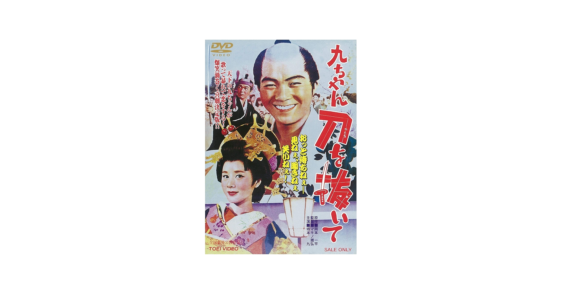 【九ちゃん刀を抜いて】の見所は、「次郎長三国志」の名匠・マキノ雅弘監督が坂本九を主演に迎え、昭和4年に製作された「刀を抜いて」を再映画化。